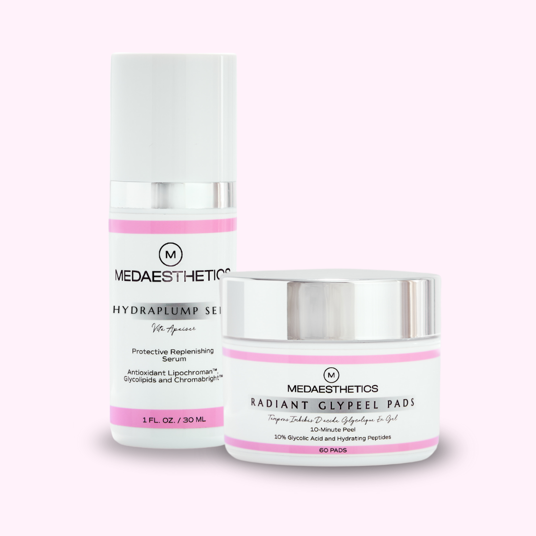 GlyPeel Pads combine 10% glycolic acid with hydrating peptides to gently exfoliate the skin’s surface. By removing built-up dead skin cells, they help refine texture, brighten tone, and improve overall clarity while peptides support skin comfort and resilience during exfoliation.