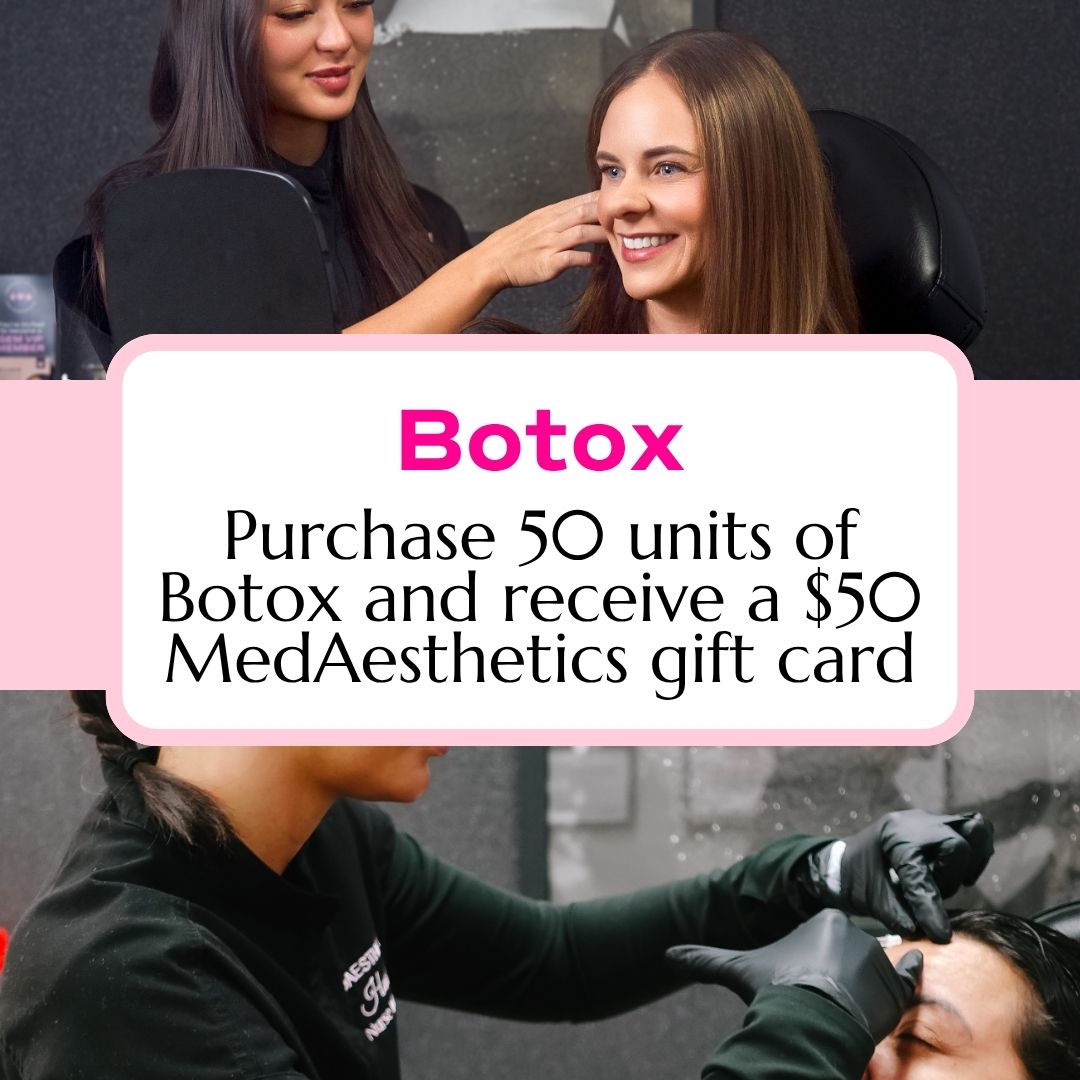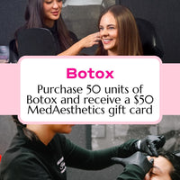 ✨ Purchase 50 units of Botox and receive a $50 MedAesthetics gift card to use on your next service! ✨